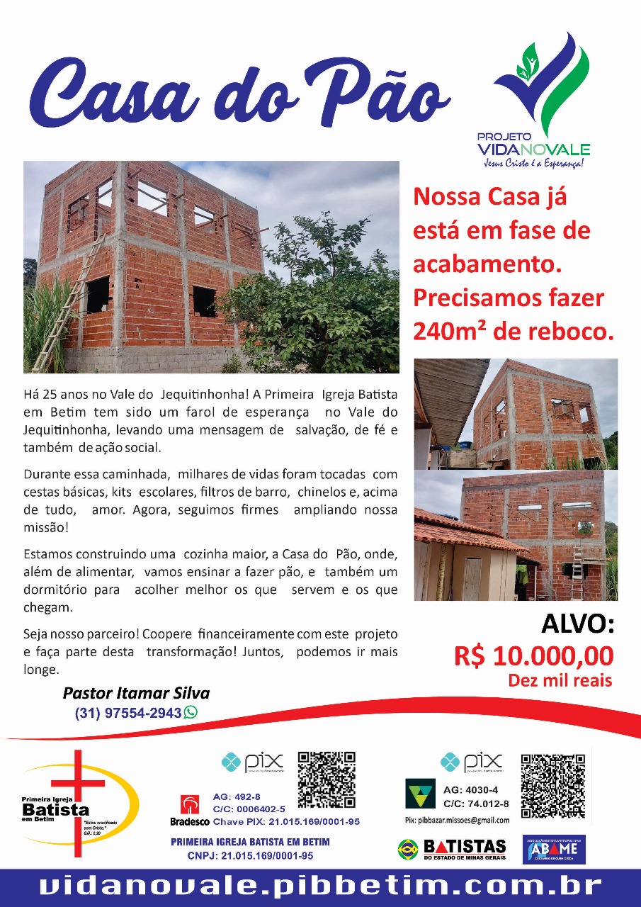 Criado e administrado pela Primeira Igreja Batista em Betim - MG, o projeto visa levar aos povos mais carentes dignidade e ajuda humanitária.