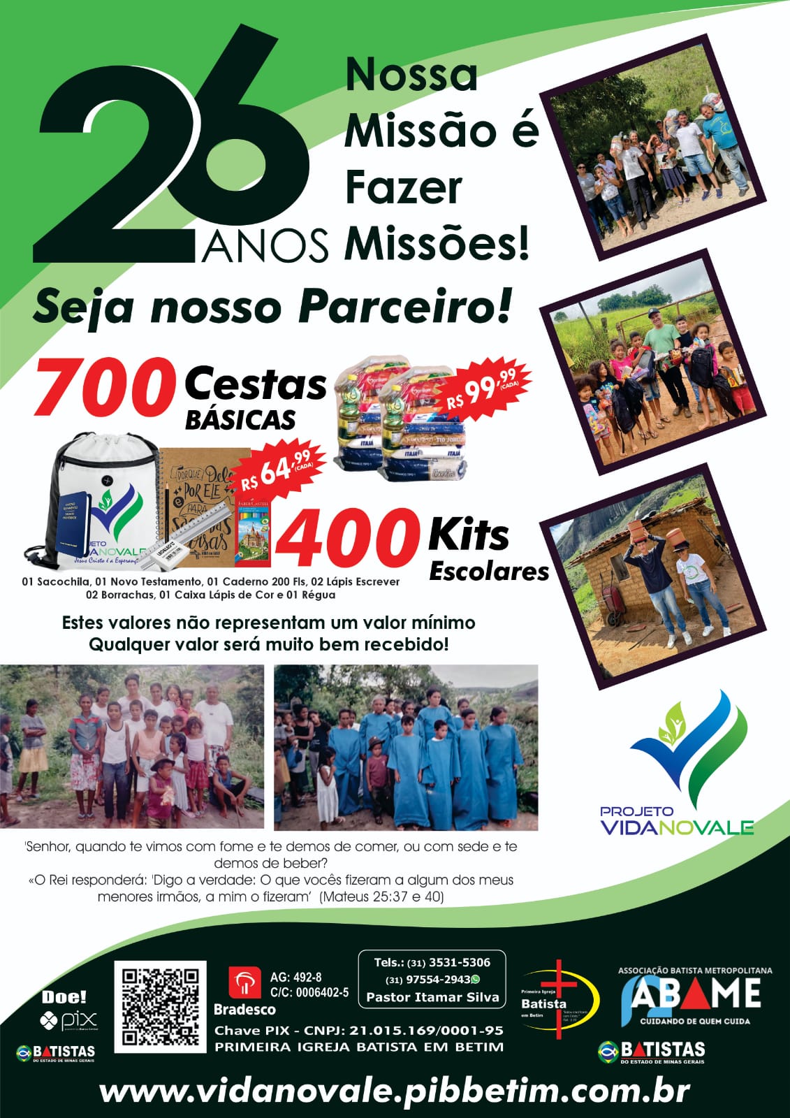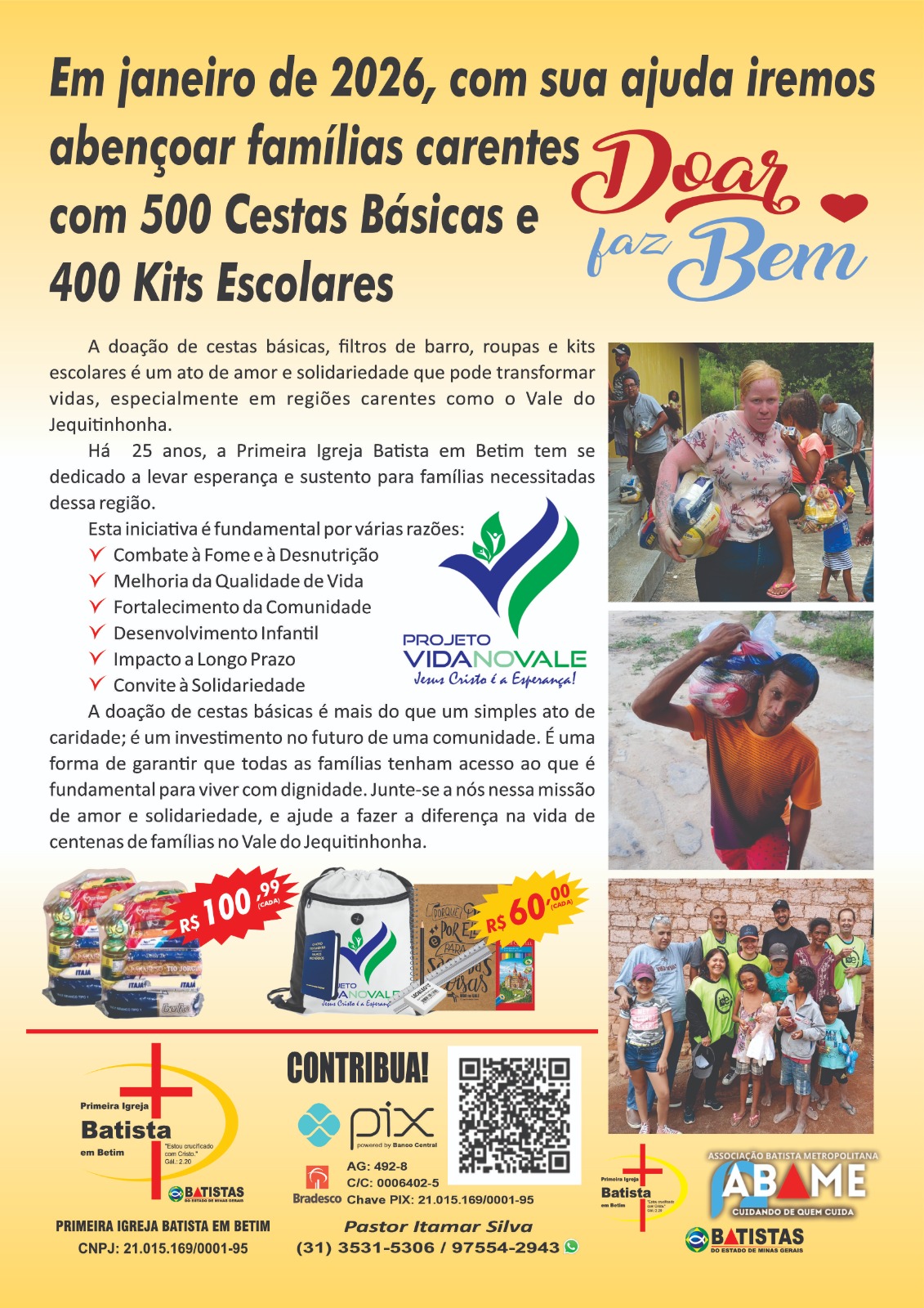 Pastor Itamar sentiu em suas diversas viagens ao vale do Jequitinhonha a necessidade de ajudar aquelas pessoas.